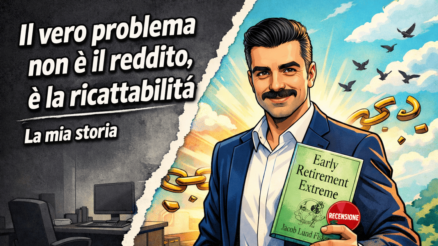 Early Retirement Extreme di Jacob Lund Fisker è un libro geniale ma estremo. Il principio è semplice: più produci e meno consumi, più sei libero. Andrea Lisi ha applicato questo concetto a modo suo alzando il reddito invece di tagliare le spese raggiungendo 3x il suo costo di vita in entrate passive in 10 anni, con 2 figli, restando in Italia. Il vero obiettivo non è diventare ricchi, ma non essere ricattabili.